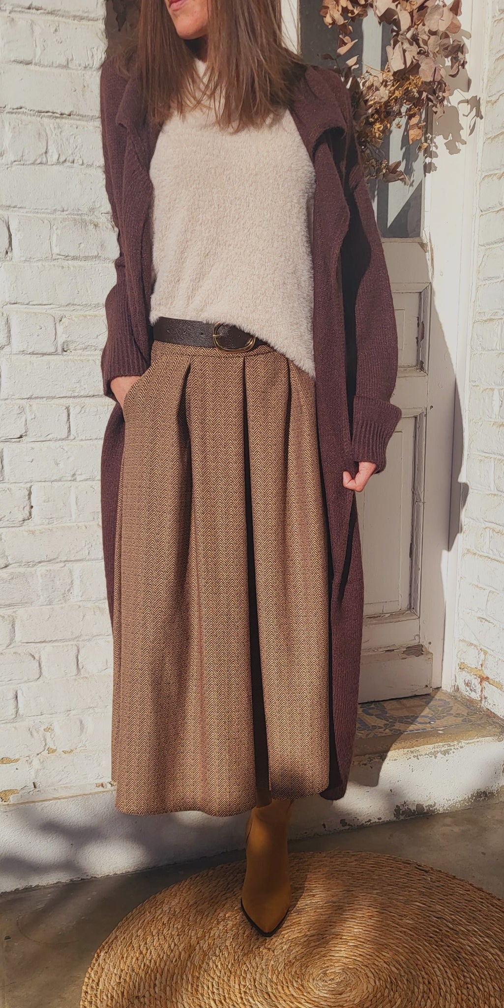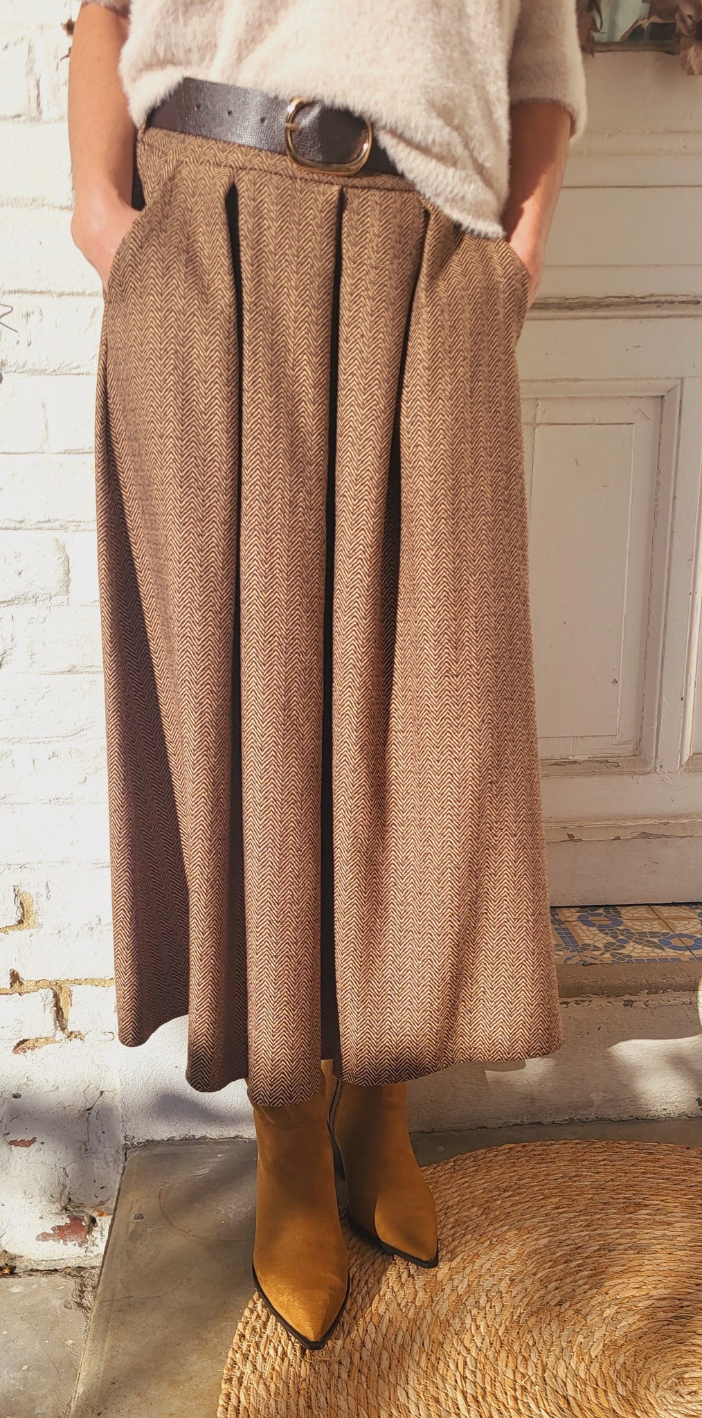 Taille élastiquée à l'arrière, ceinture fantaisie amovible, 2 poches côté