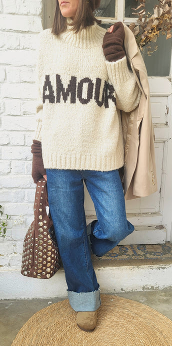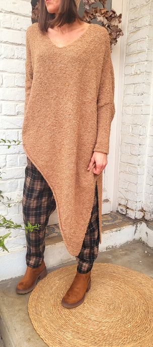 Pull bouclette destructuré Camel / Noir / Kaki / Beige
