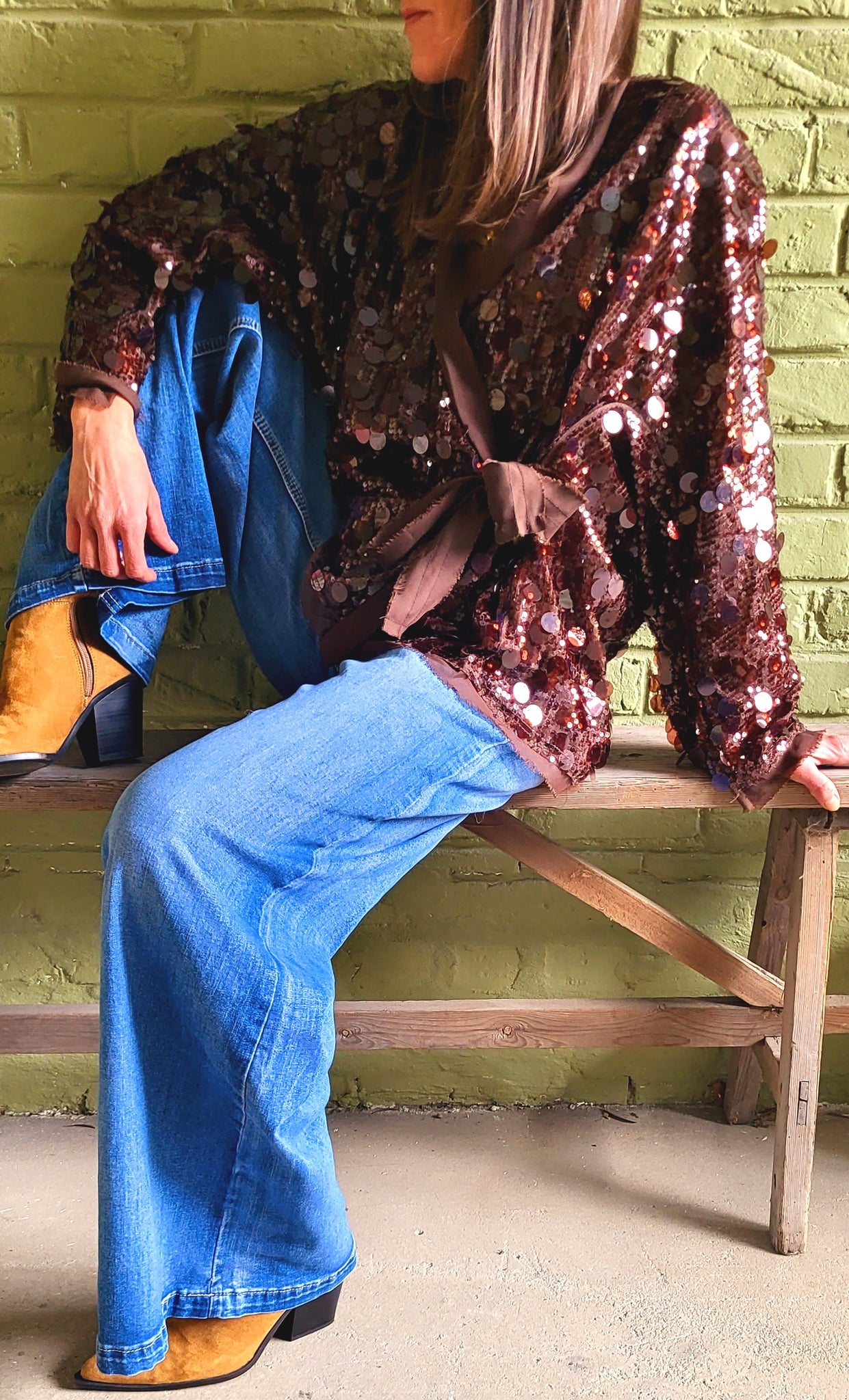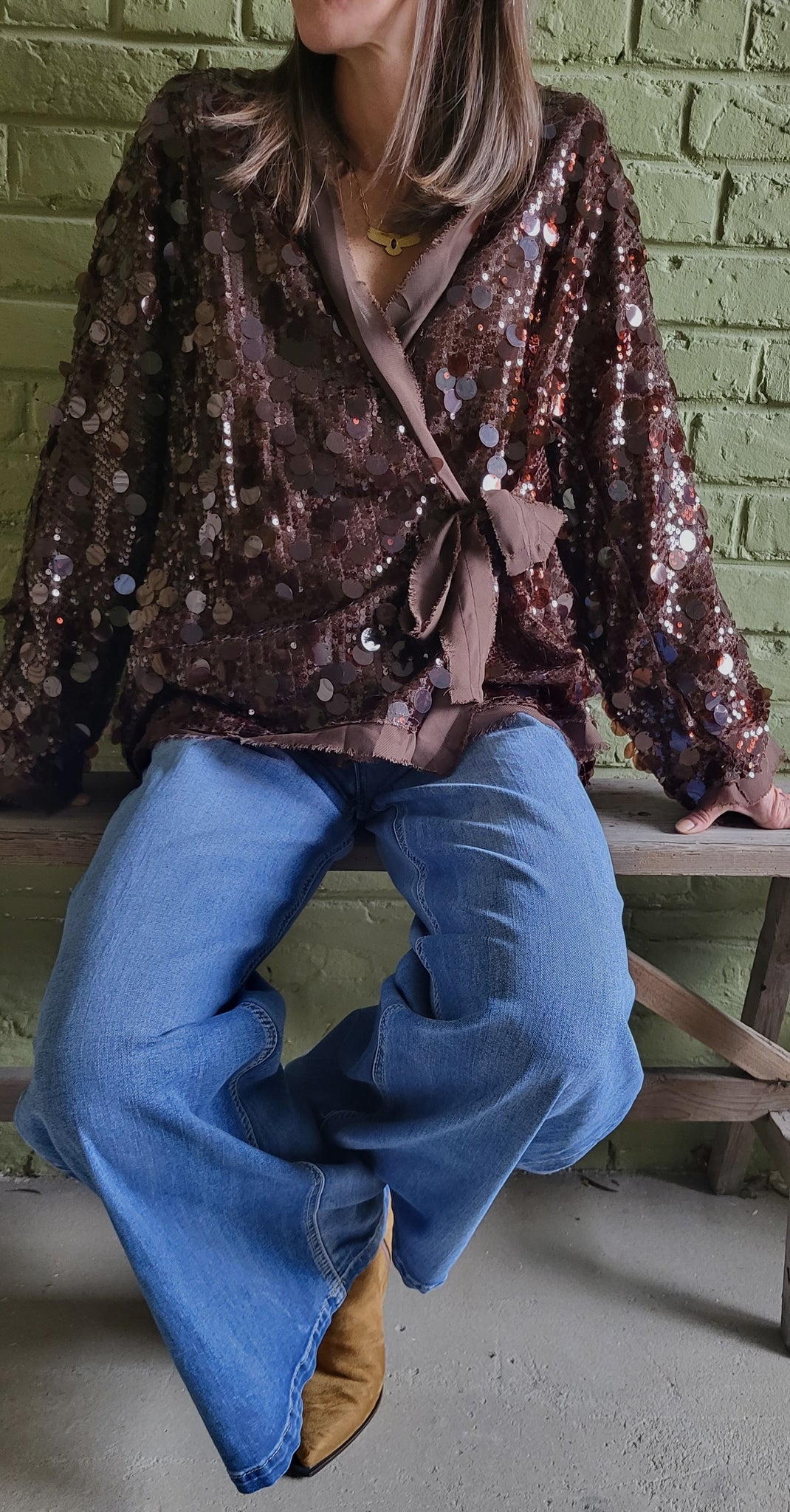 • Charger l'image dans la galerie, Gilet gros sequins chocolat ou Vert anis