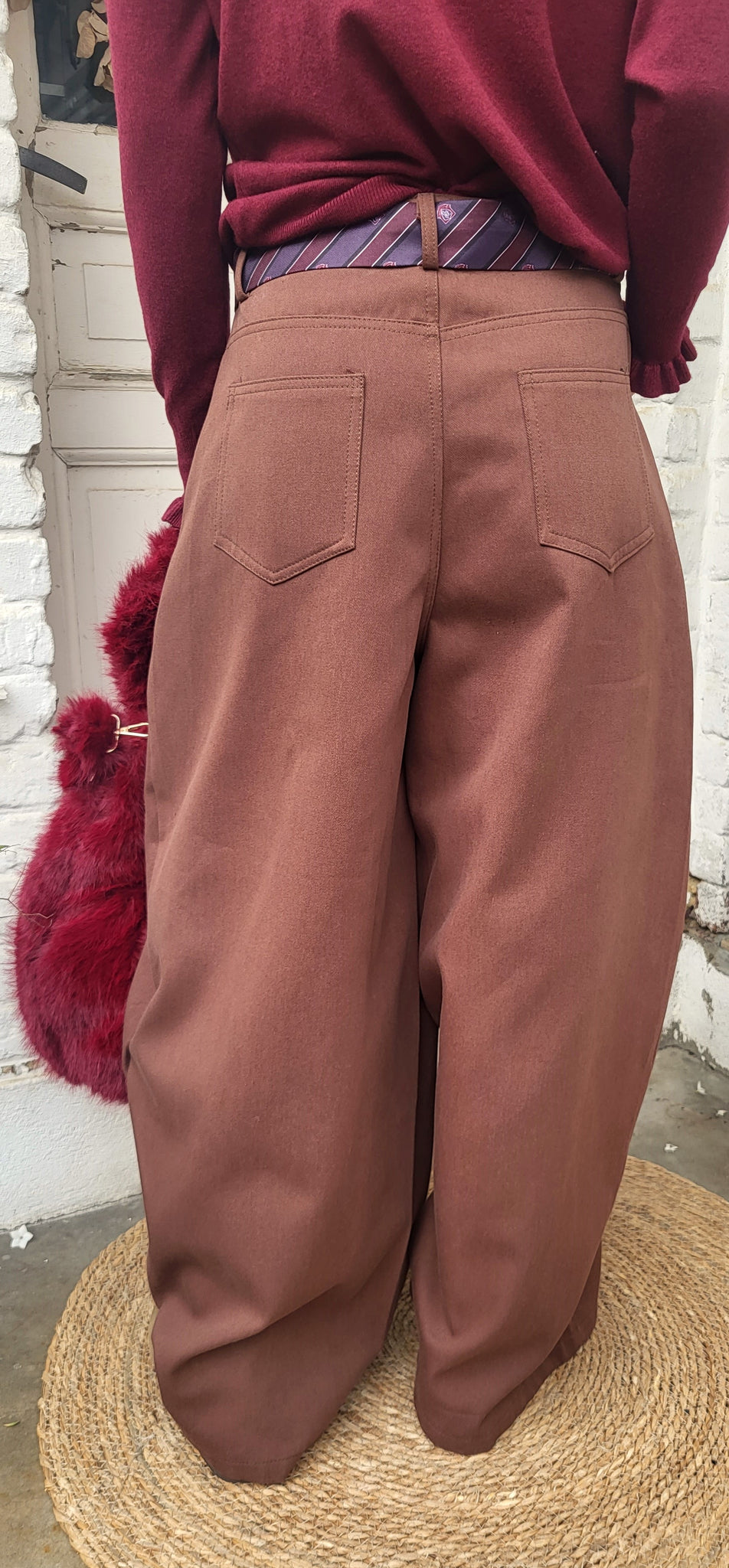 Original ! le pantalon forme ballon ceinture cravate bordeaux gris