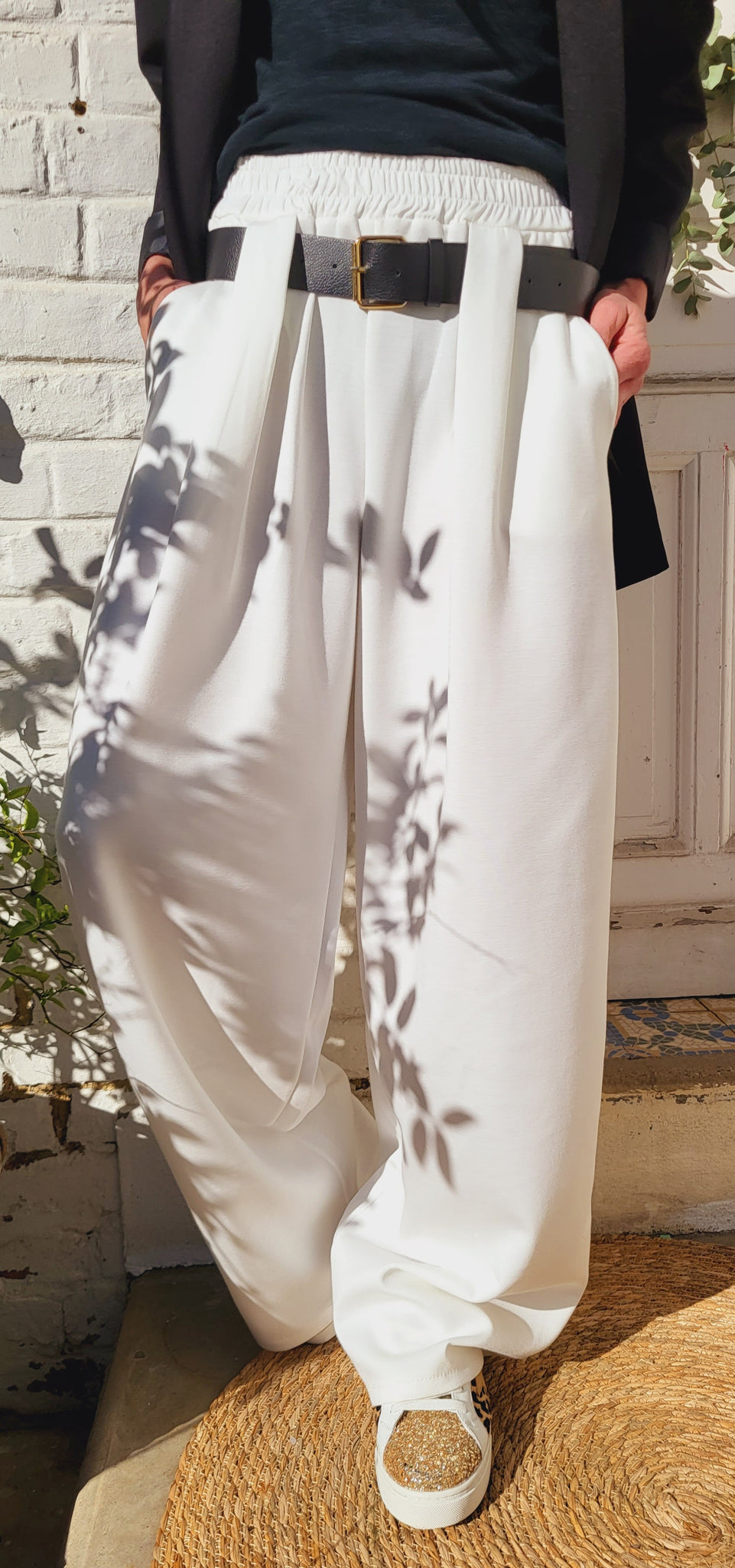 Pantalon jogg large ceinture élastiquée avec passants ou passer la ceinture fantaisie
