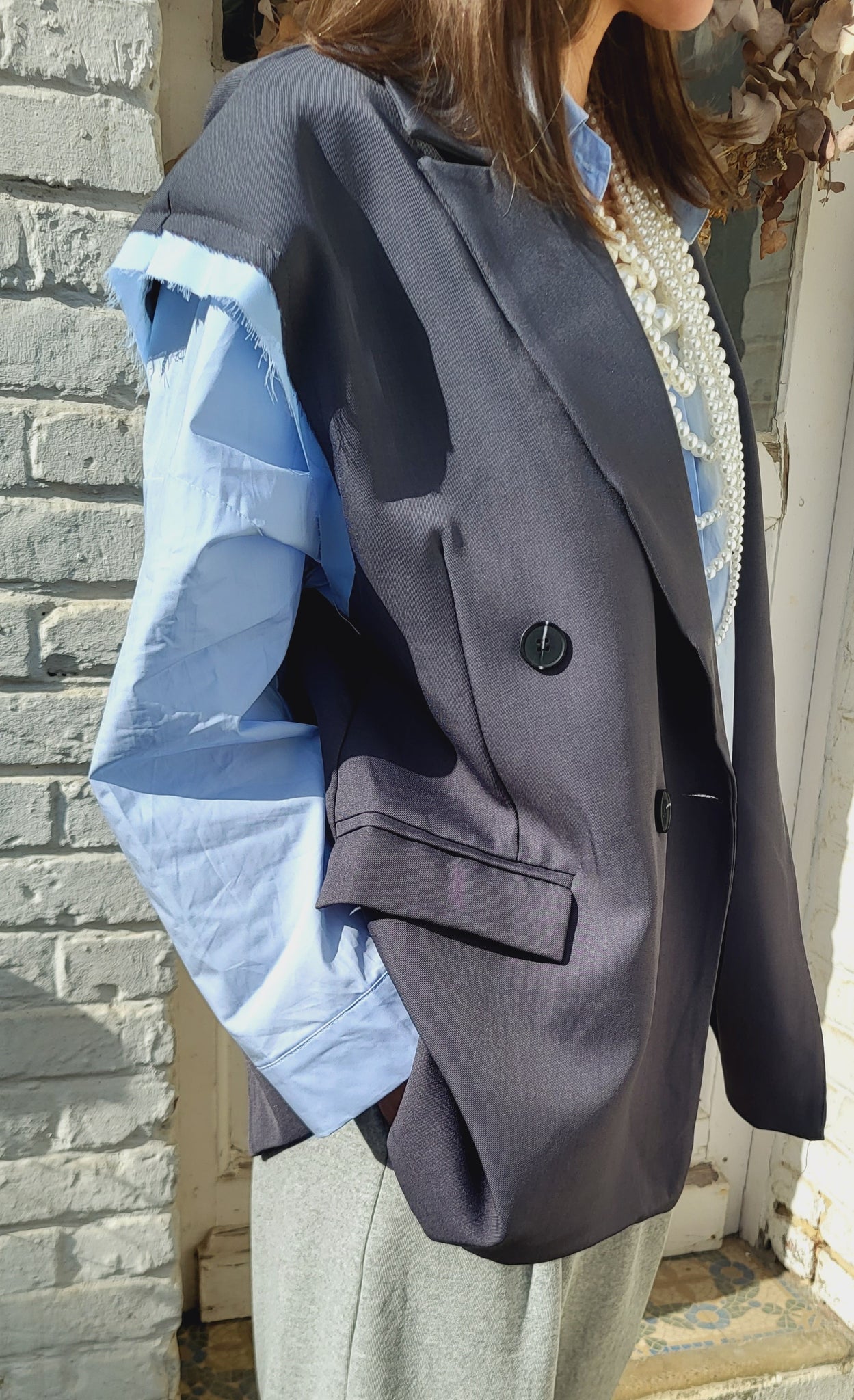 Veste blazer sans manche gris anthracite