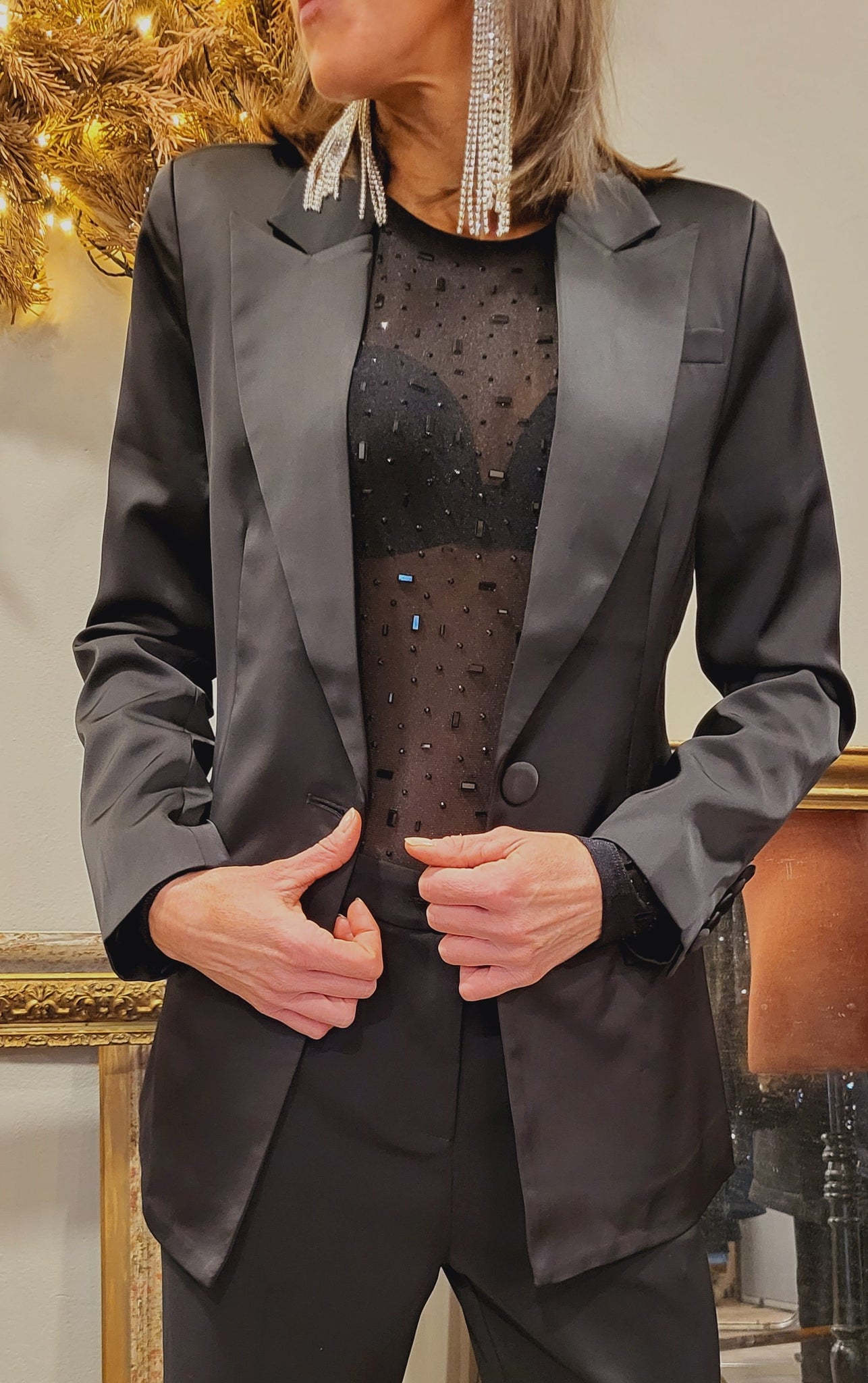 Chic et féminine, la veste tailleur satinée coupe ajustée