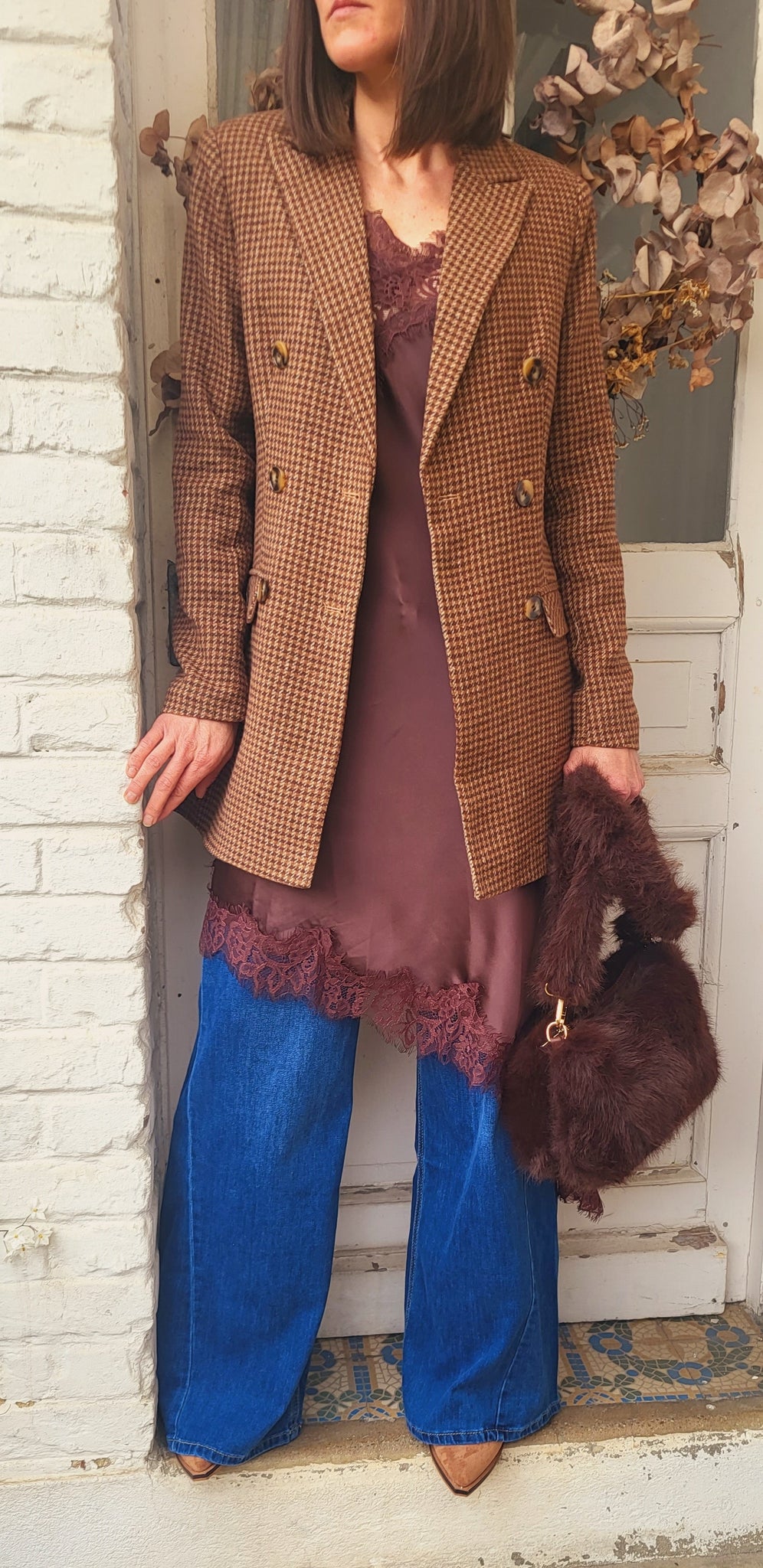 Double boutonnage, petites épaulettes 2 poches rabat sur le devant