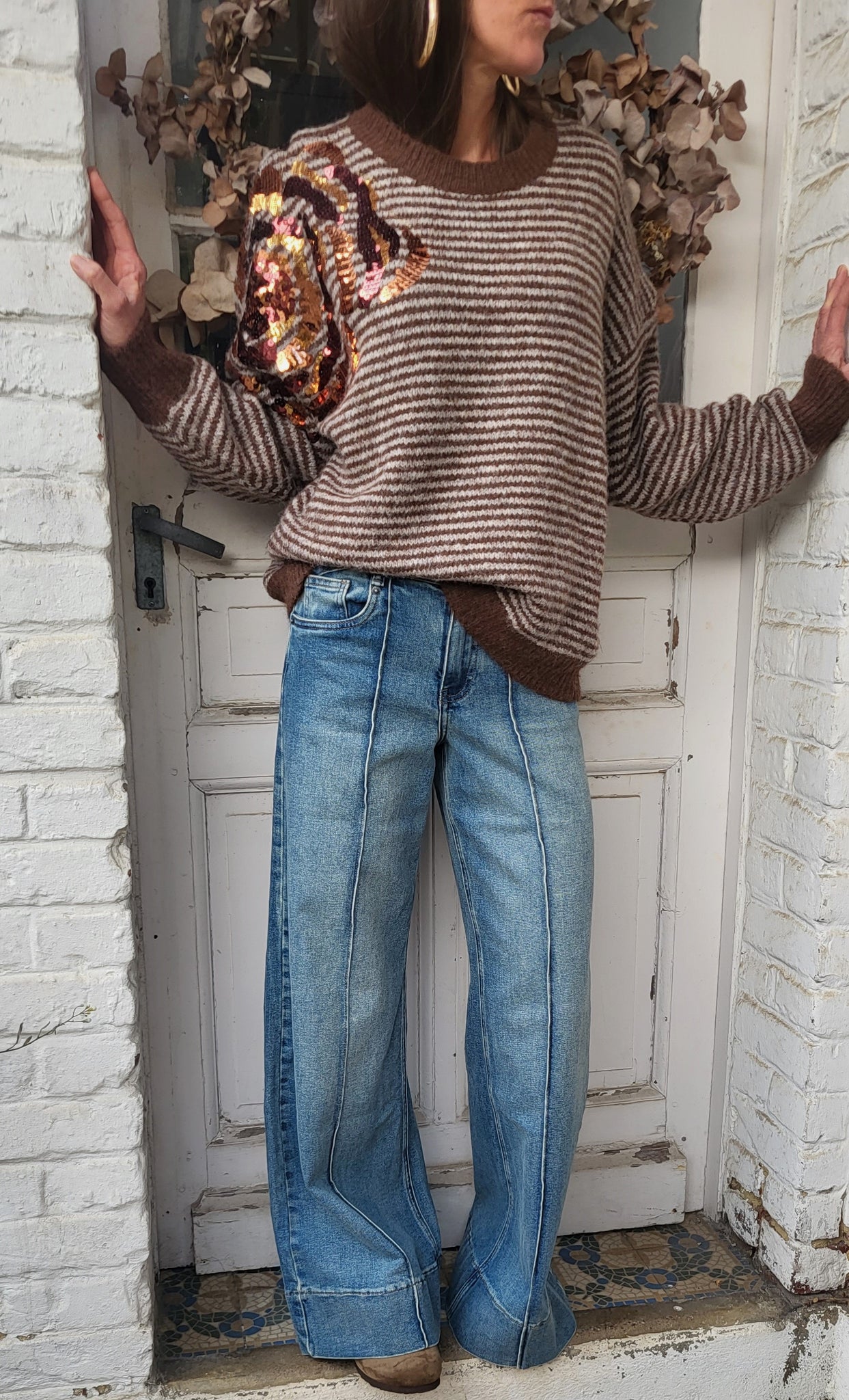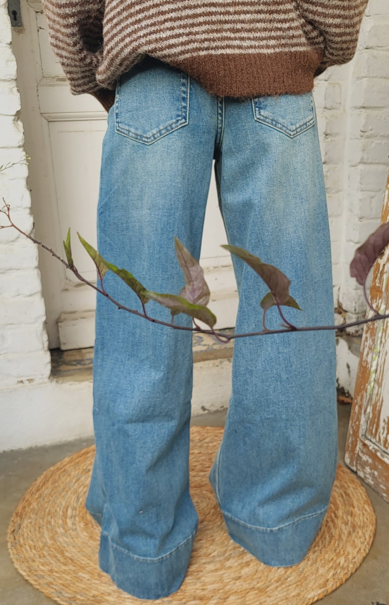 Jean couleur stone, jambes droite avec une couture sur le devant