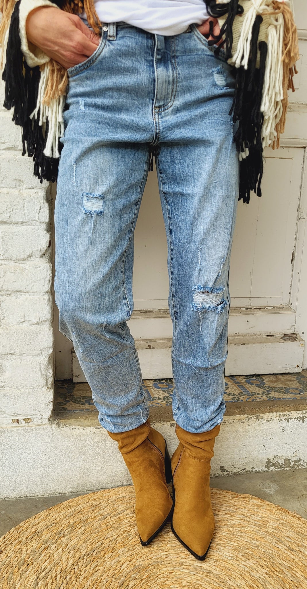 Jean coupe boyfriend délavage clair