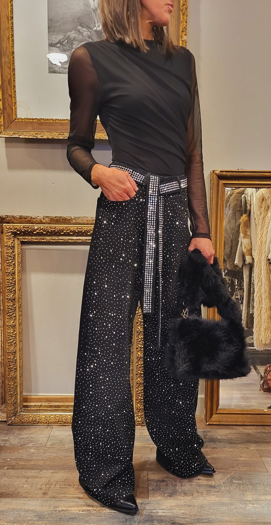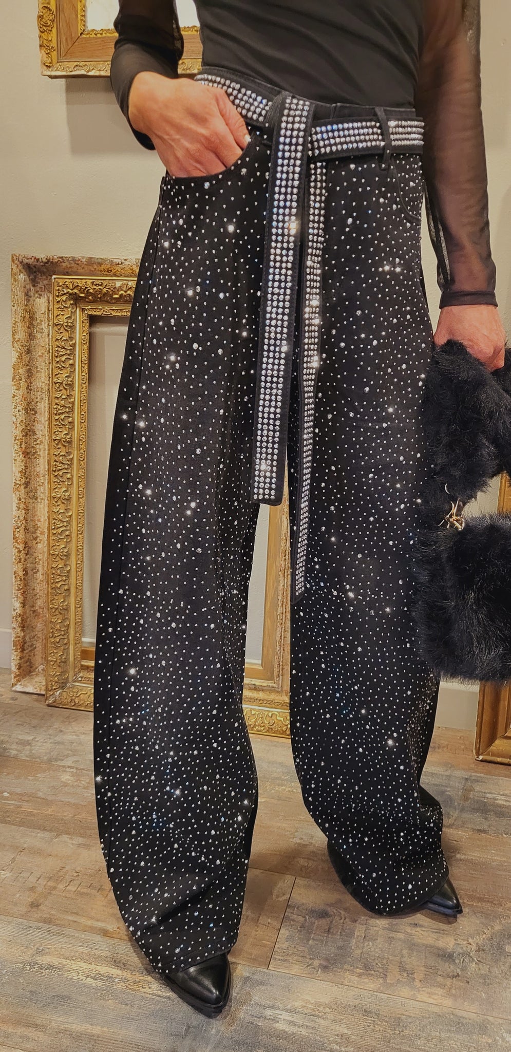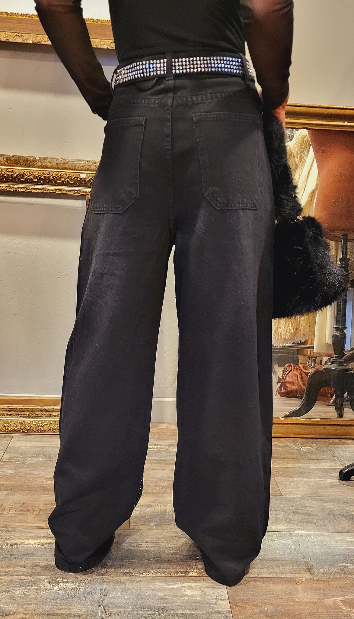 Fun et original !! Pantalon jean tout en strass sur le devant 'pas de strass à l'arrière)