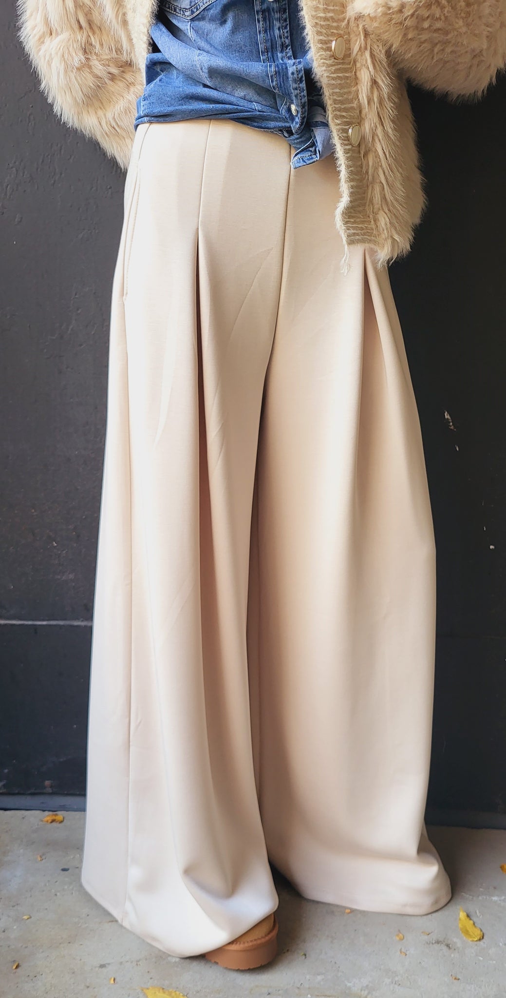Matière top, le pantalon beige 2 pinces sur le devant, top confort