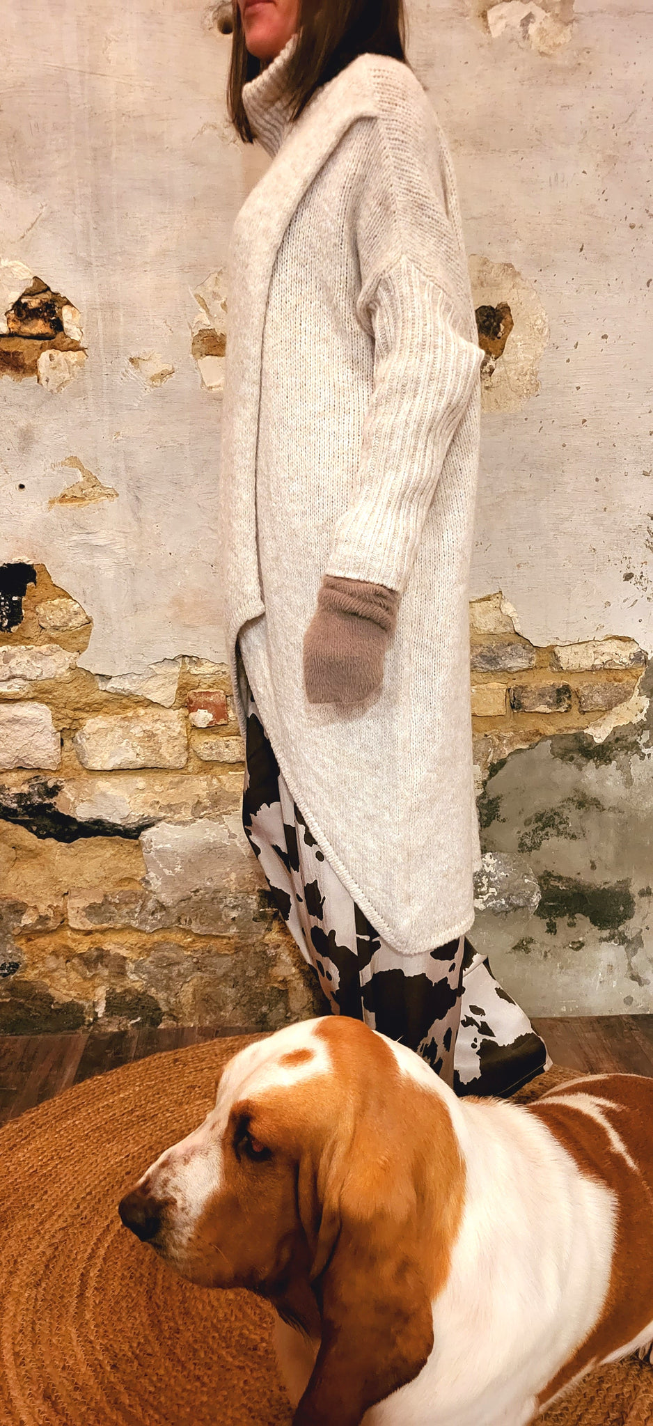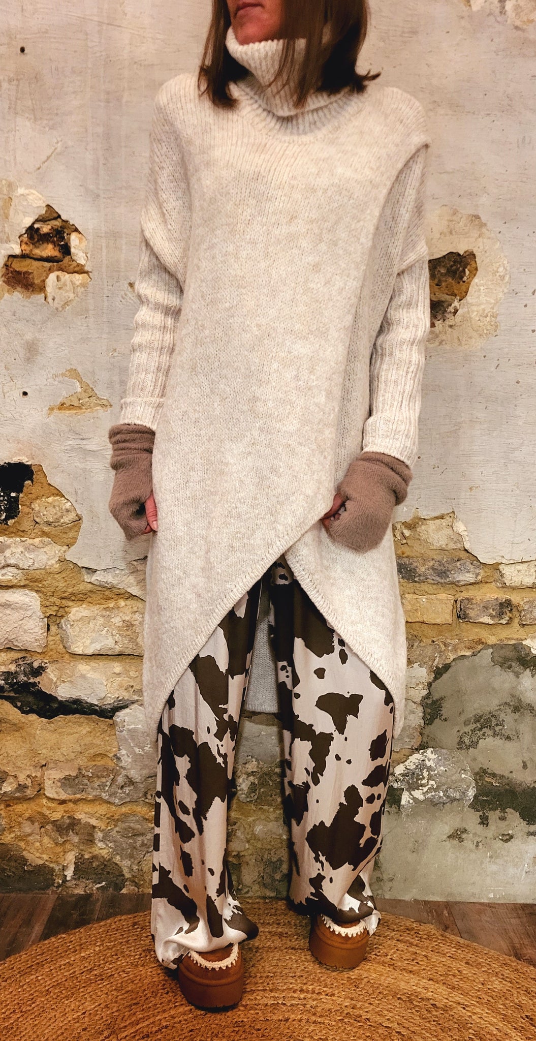 Long pull destructuré col roulé plus court sur le devant