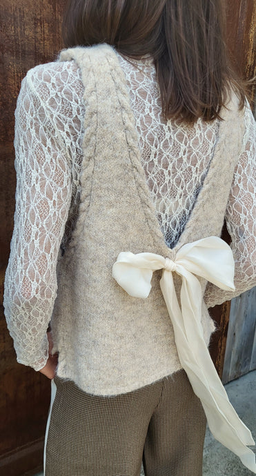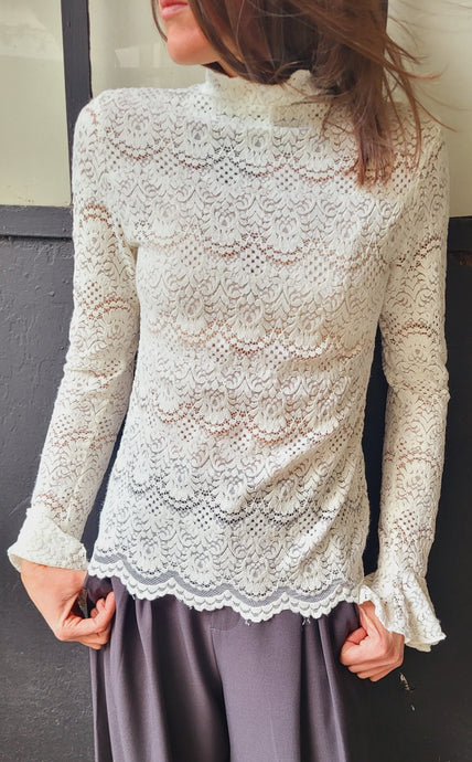 Top dentelle manches longues Noir / Camel / Ecru / Kaki / Beige