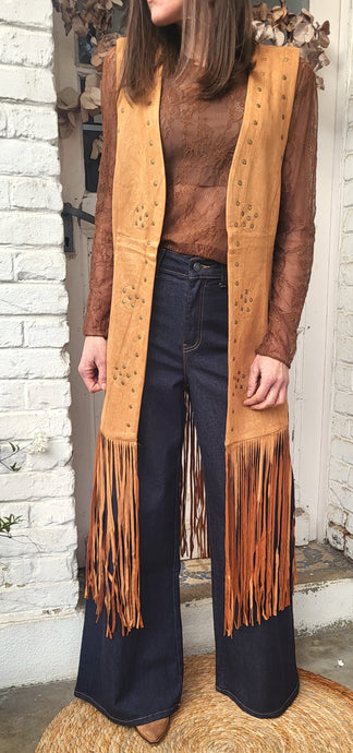 Top frangé camel / blanc / beige / rose / orange / kaki / jaune / noir