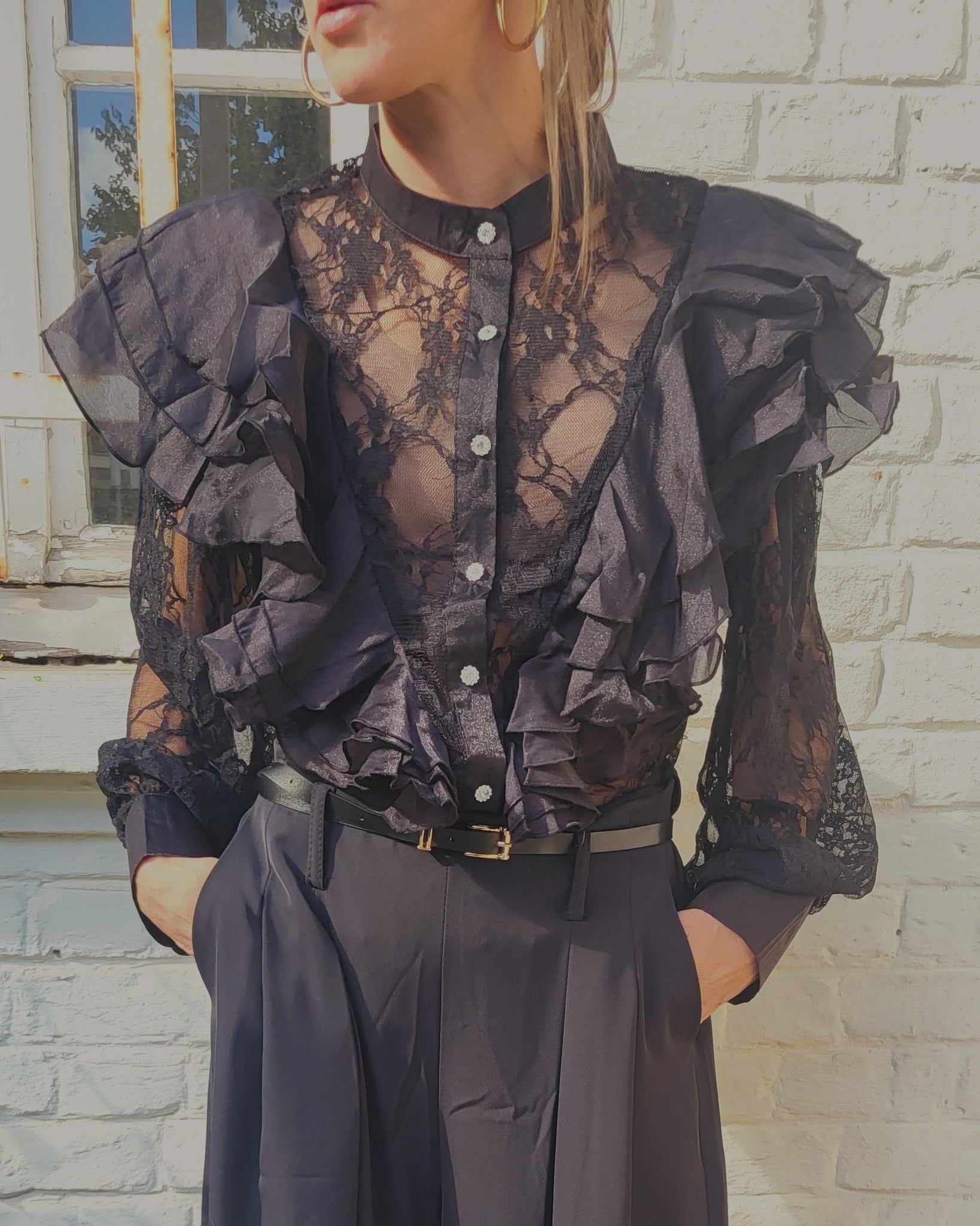 petits boutons bijoux, longues manches dentelle fermées par 2 petits boutons