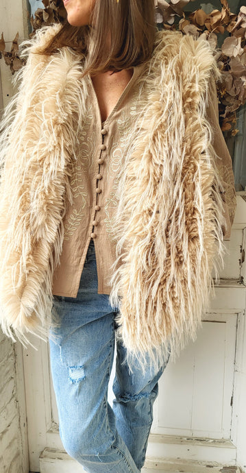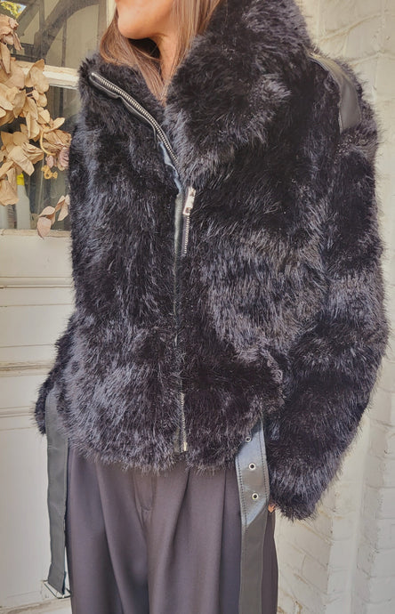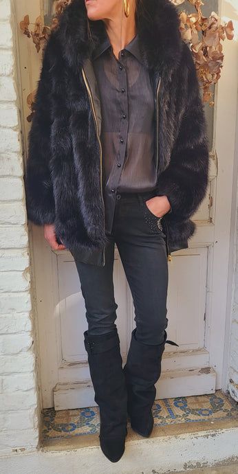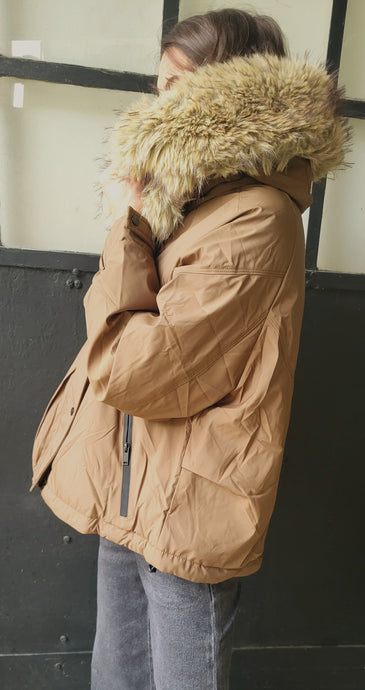Blouson oversize capuche fourrure Beige / chocolat / Noir