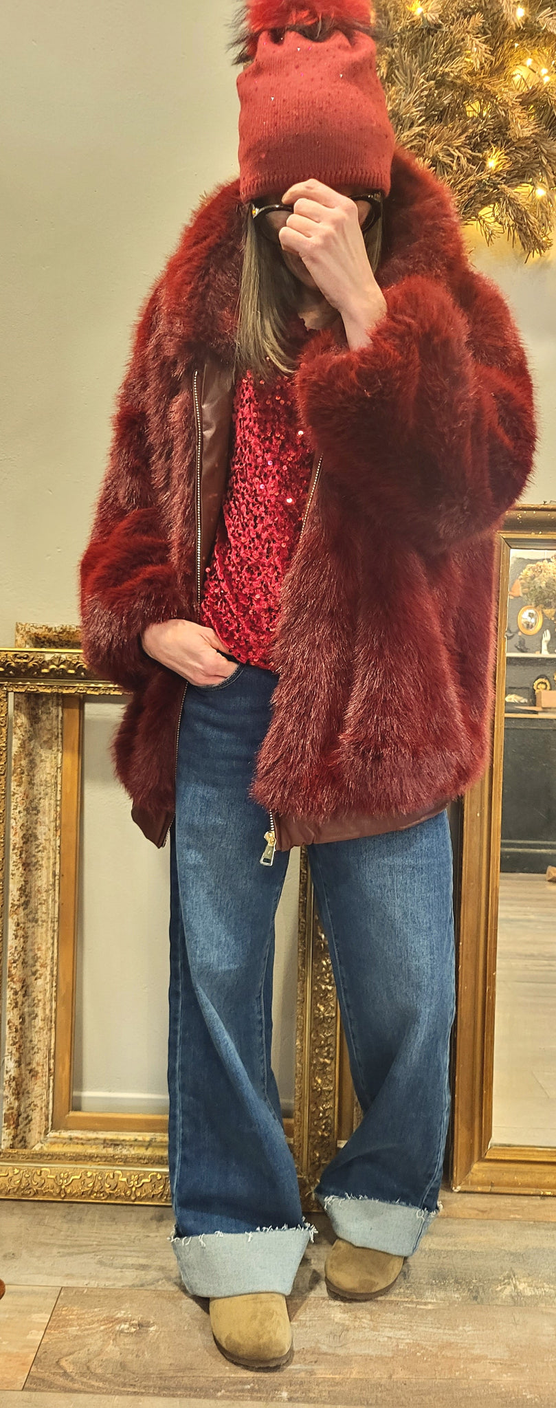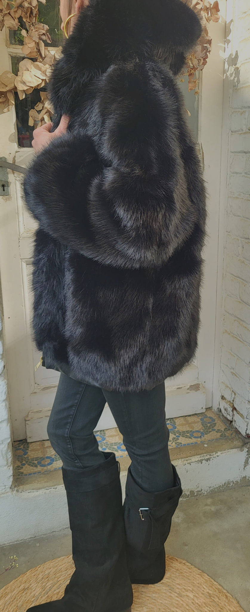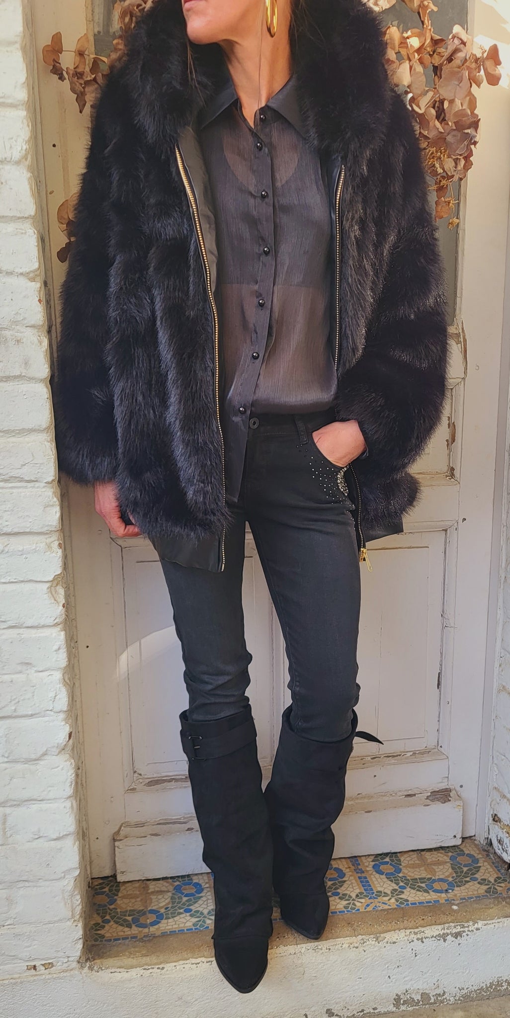 Juste top, le blouson capuche fausse fourrure tout doux doublé