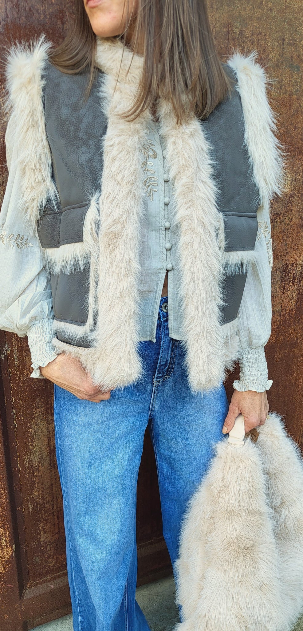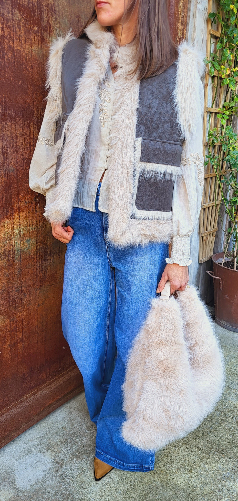 Veste boléro chocolat clair doublé fausse fourrure toute douce beige