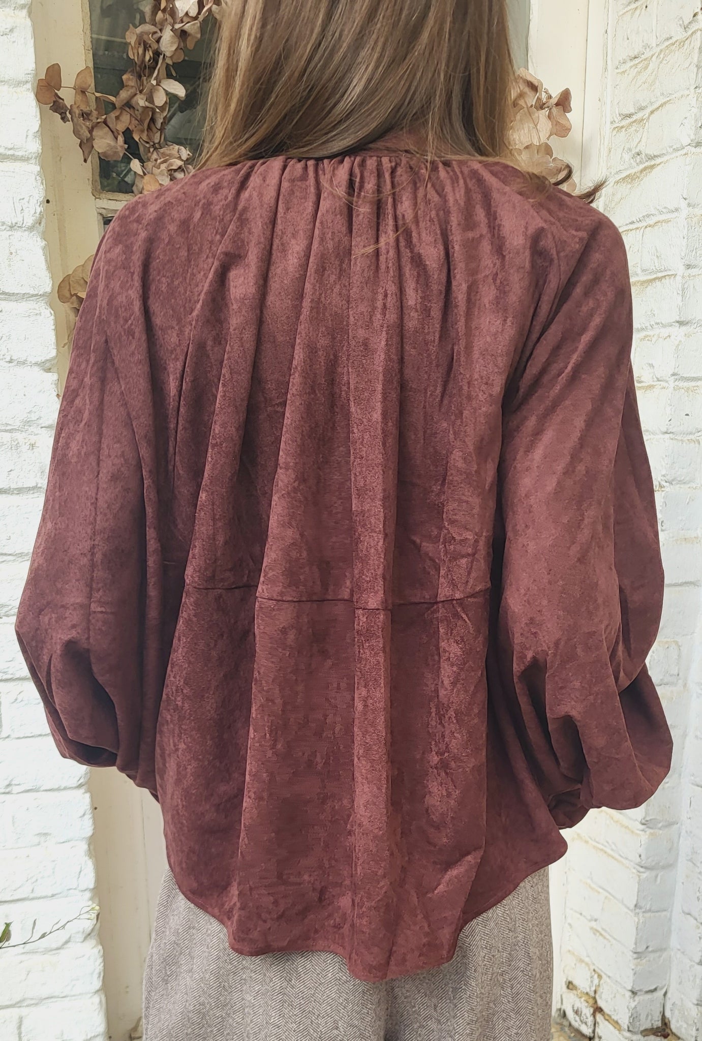 Bomber suédine souple chocolat qui tire sur l'aubergine