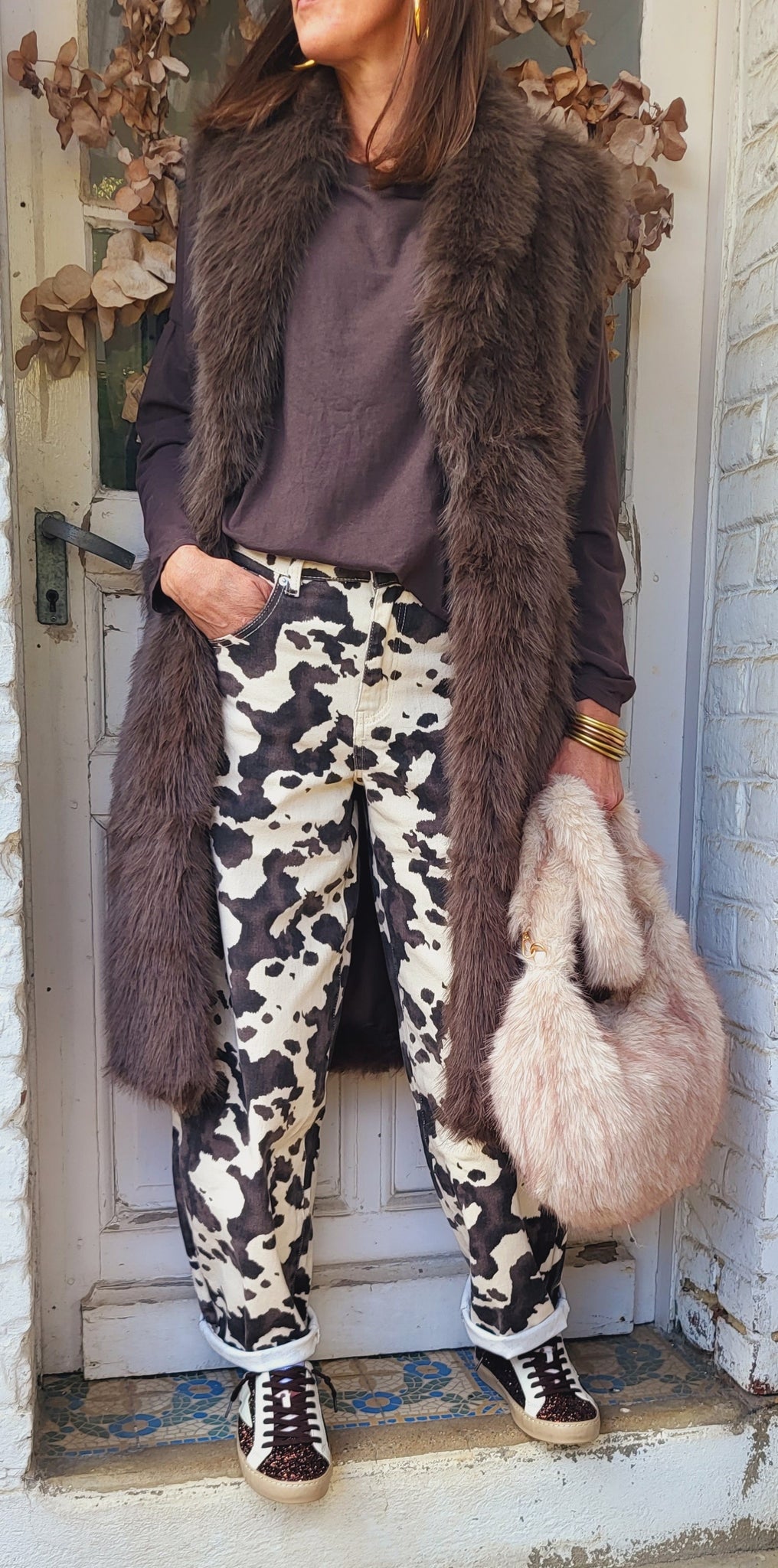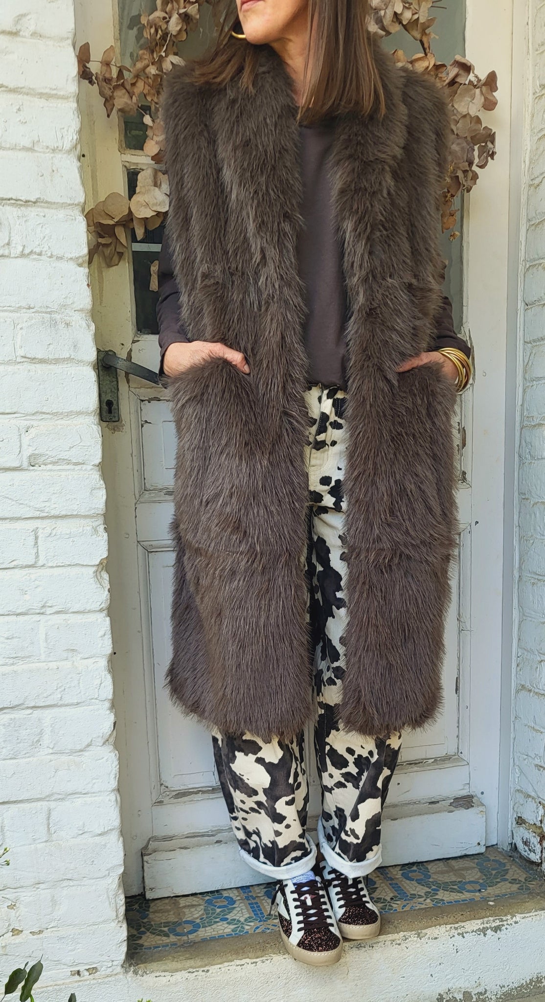 Toute douce, la veste longue en fausse fourrure moka doublée