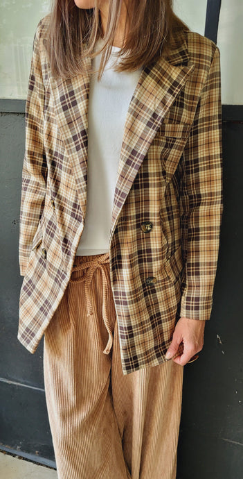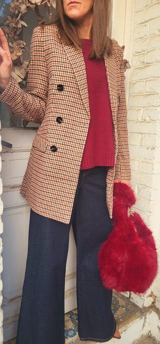 Veste pied de poule bordeaux camel
